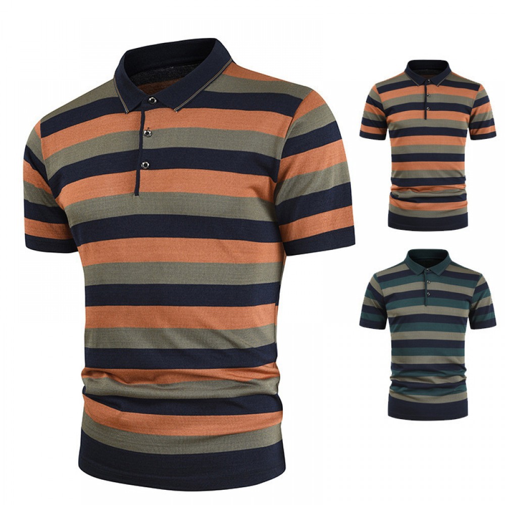 New Summer Men's Short-Sleeved T-Shirt Mens Contrast Striped Slim Casual T-Shirts