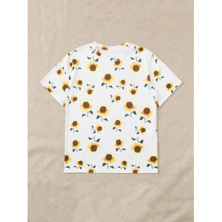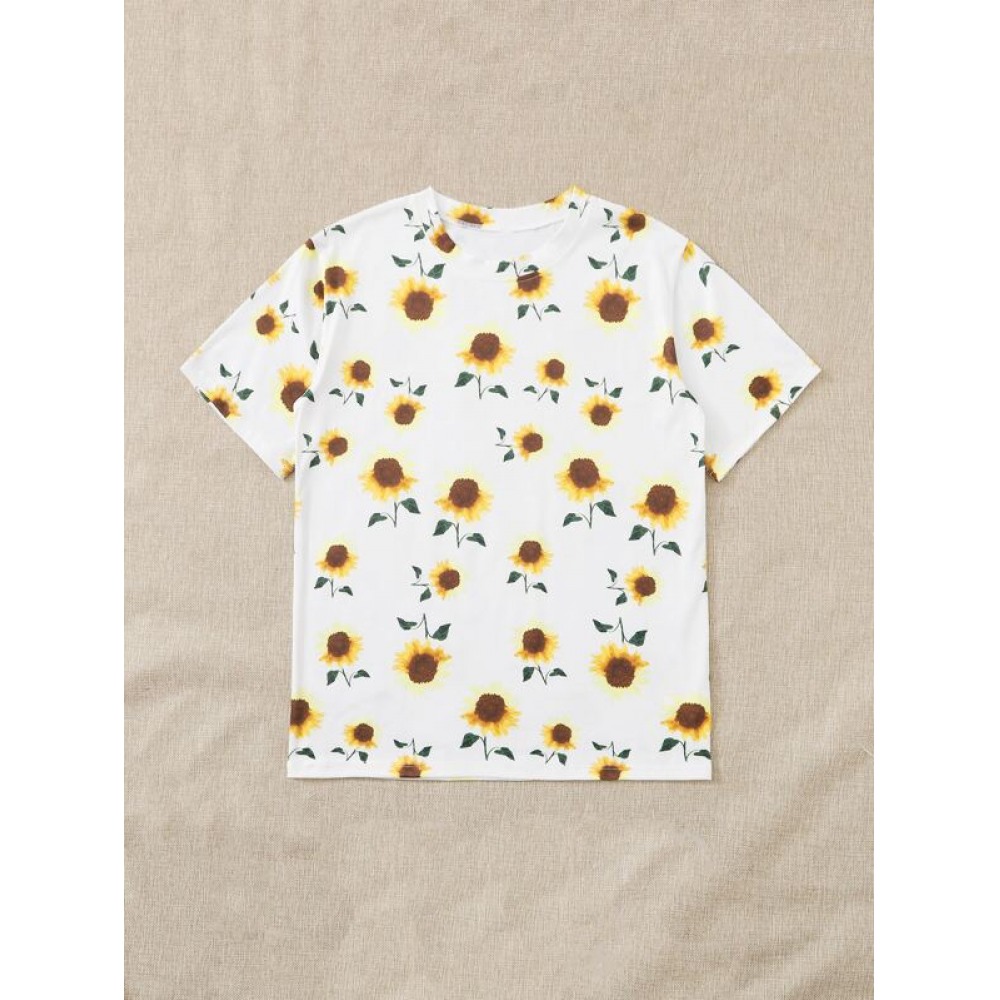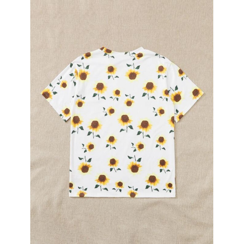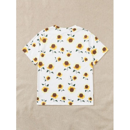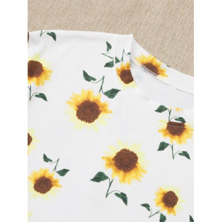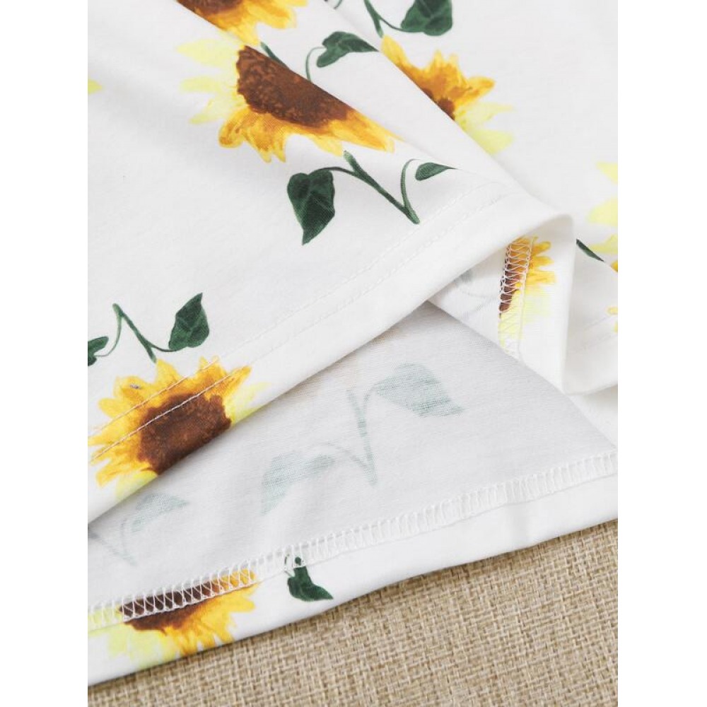Summer Hot Sunflower Print V-Neck Short T-Shirt