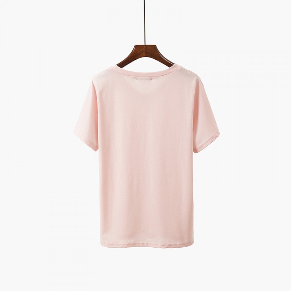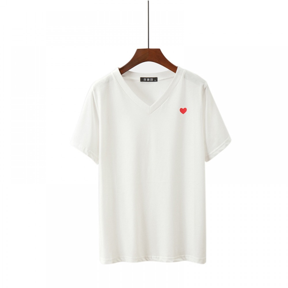 Fat Plus Size Women's Pure Color Wild Thin Love Printing Short-Sleeved T-Shirt Women