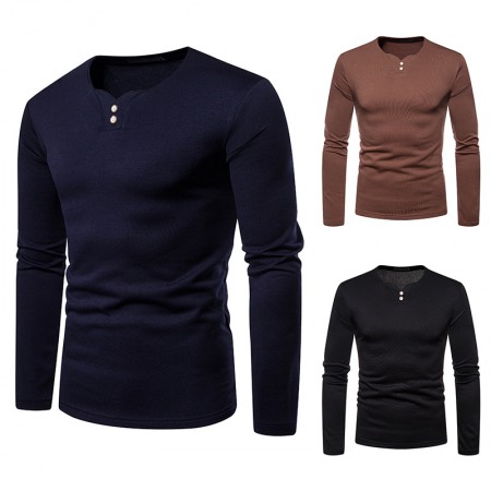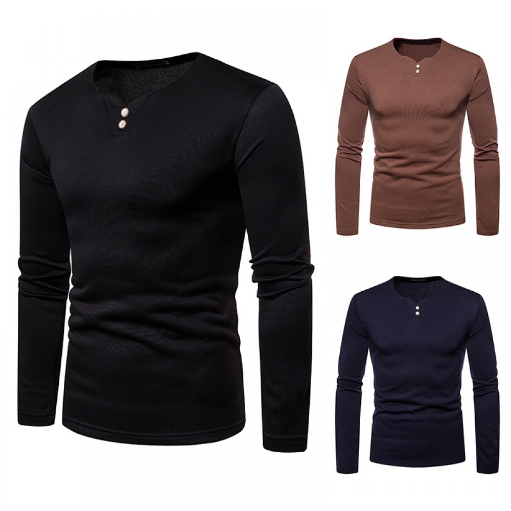 Men's Plus Size Plus Velvet Warm Henley Collar Long-Sleeved T-Shirt Bottoming Shirt