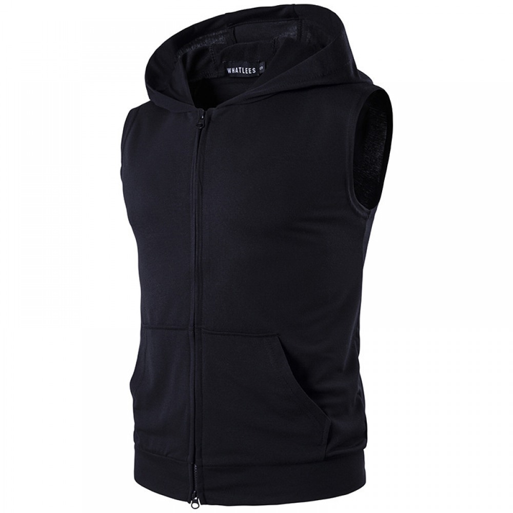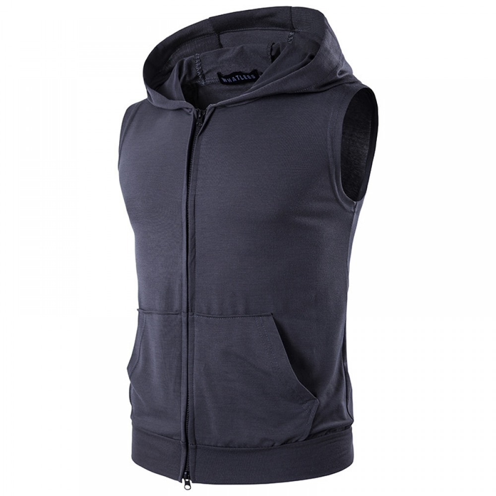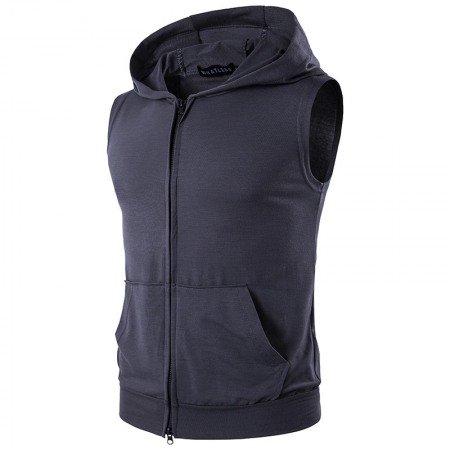 Men's Sleeveless Vest Youth Sweater Hooded Sleeve