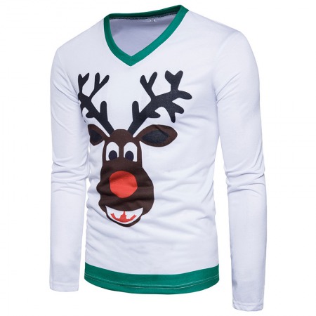 New Fashion Trend 3D Cartoon Deer Printing V-Neck Long-Sleeved T-Shirt