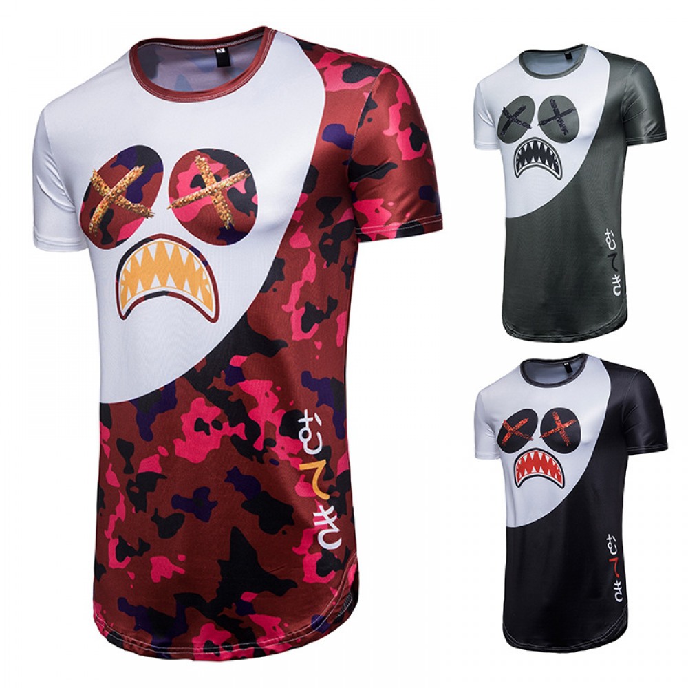 New Men's Hip-Hop Long Camouflage Print Short Sleeve T-Shirt