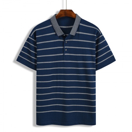 New Summer Men's Hooded Striped Lapel T-Shirt Men's Lapel Short Sleeve Generation