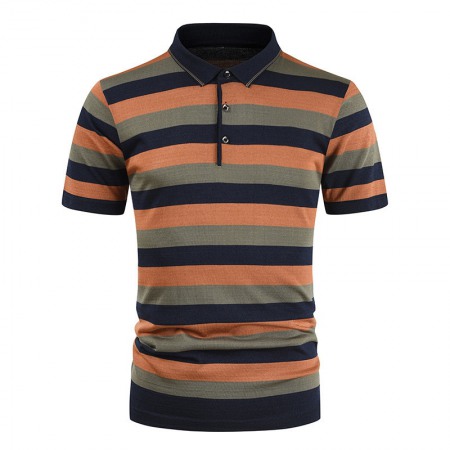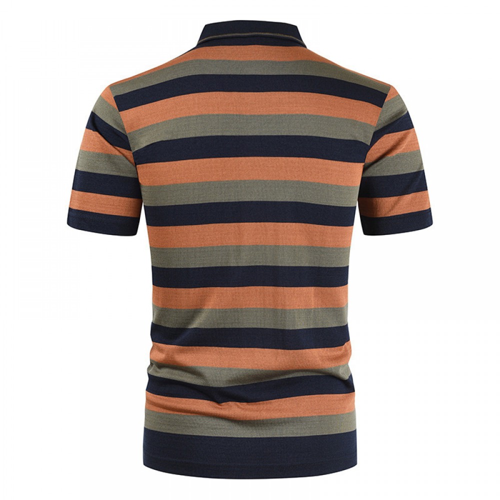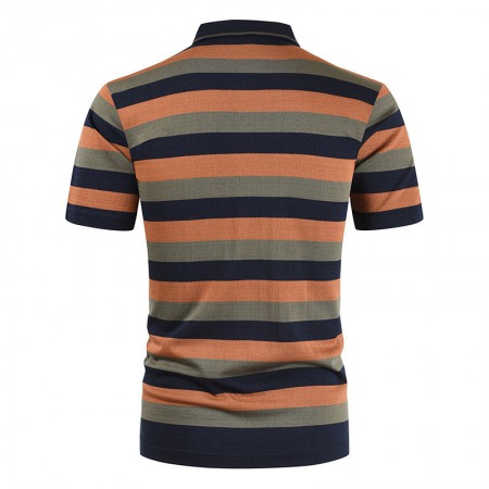 Summer T-Shirt Striped Color Matching Pockets Men's Lapel Short-Sleeved Tops for Men