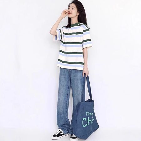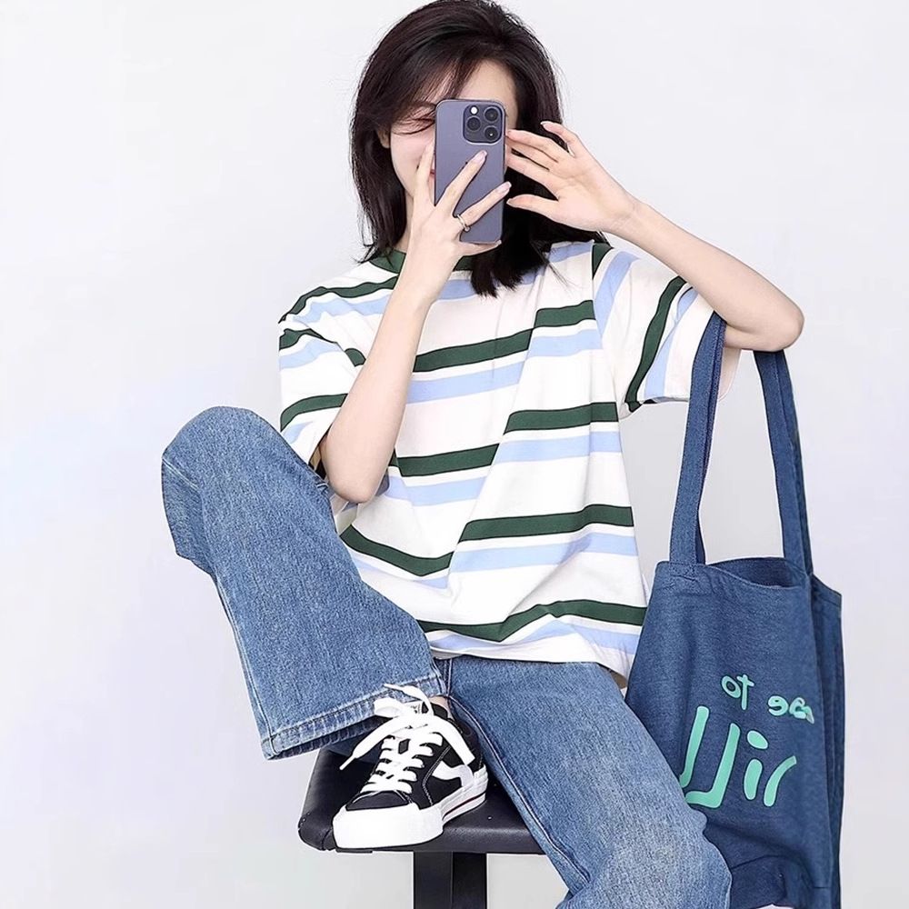 Hot Sale Letter Printed Two-Bar Short T-Shirt