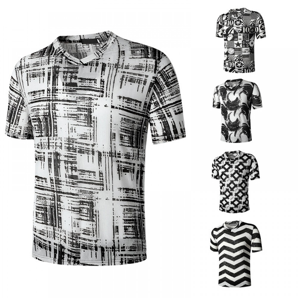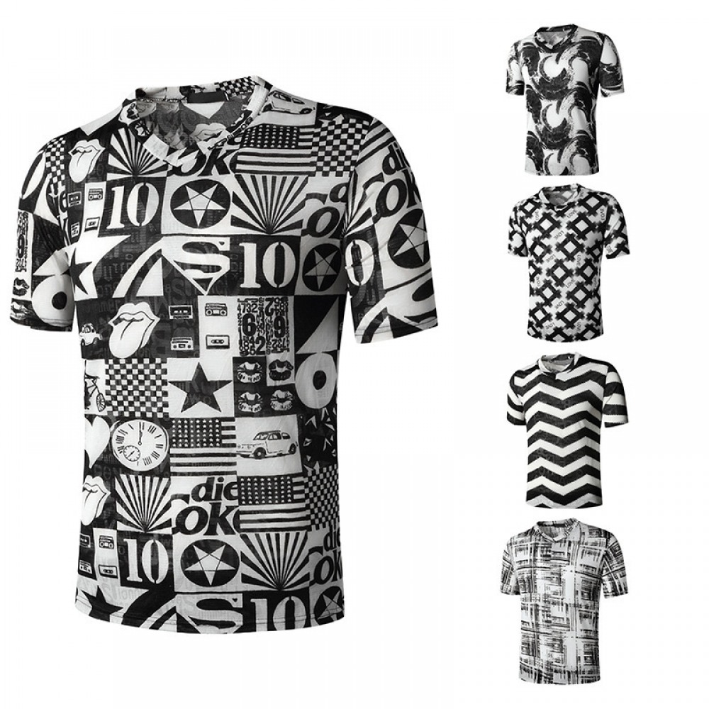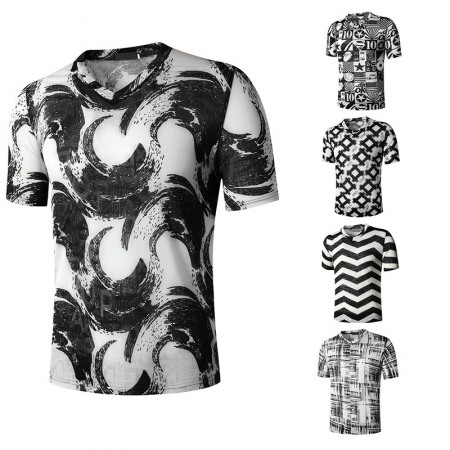 Summer New Men's Round Neck Fashion Short-Sleeved Ethnic Print All-Match T-Shirt