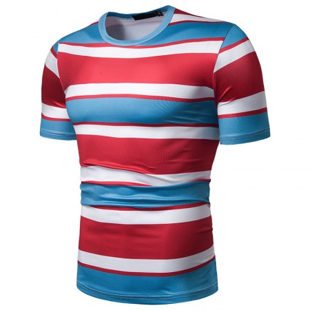 Summer Men's Short-Sleeved T-Shirt Men's Contrast Striped Slim Casual T-Shirts
