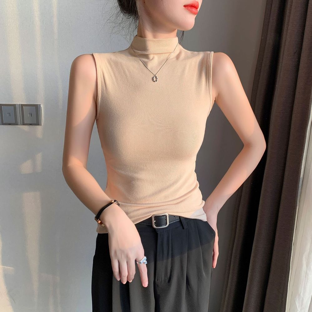 Women's Black Half Turtleneck Vest Bottoming Shirt